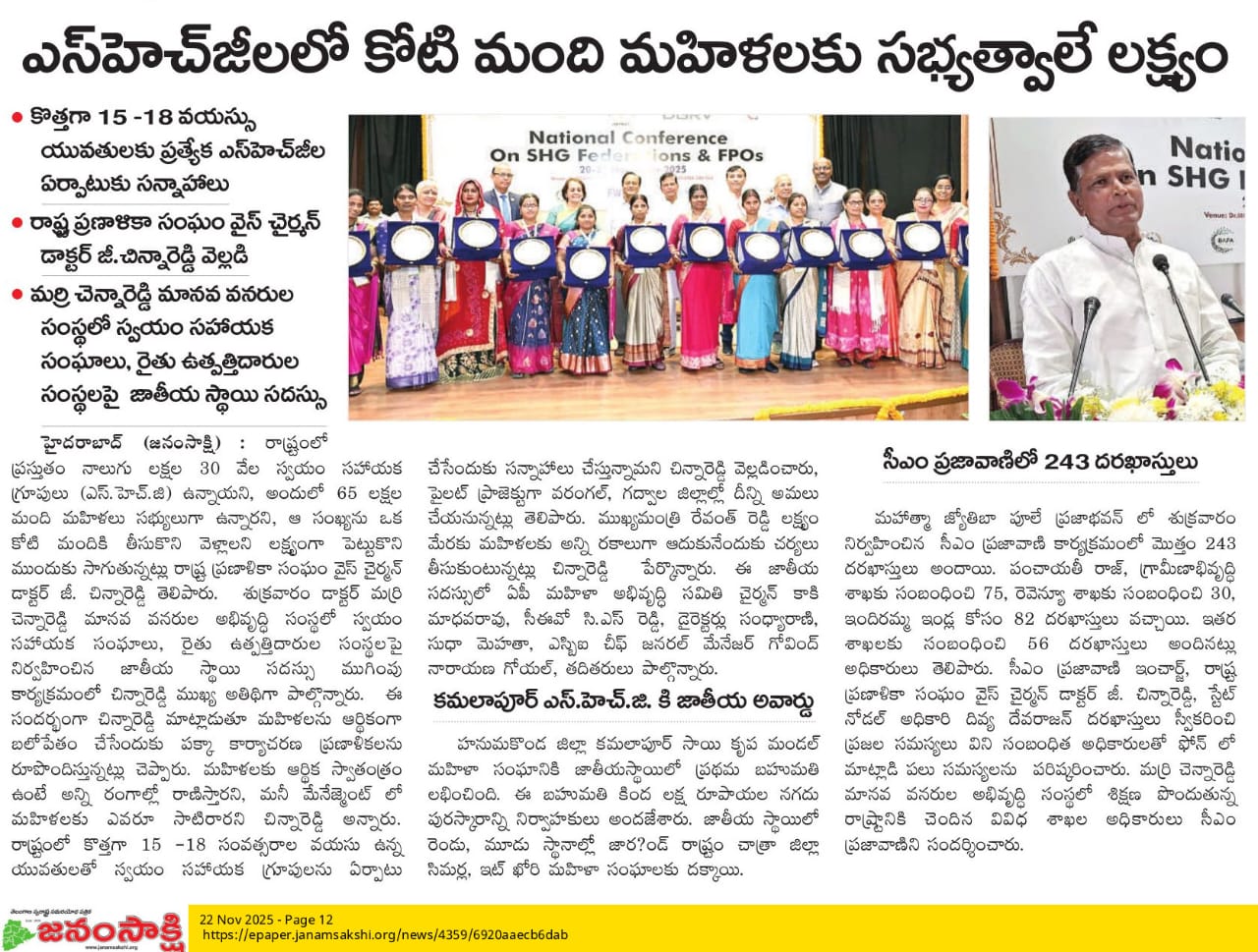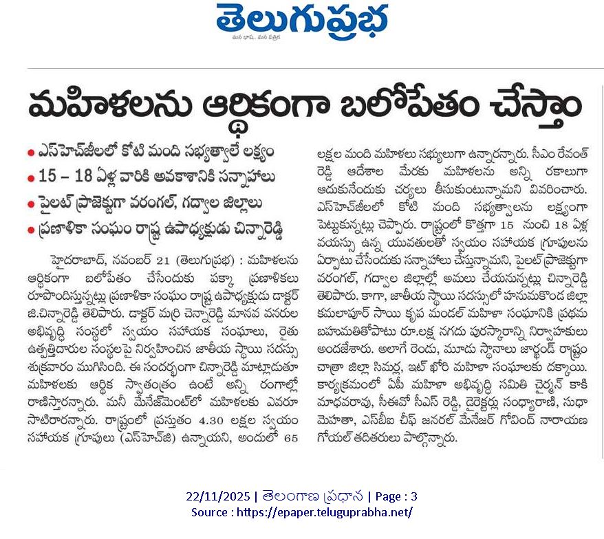 Media coverage of National Conference on SHG Federations and FPOs, 20 & 21 November, 2025
